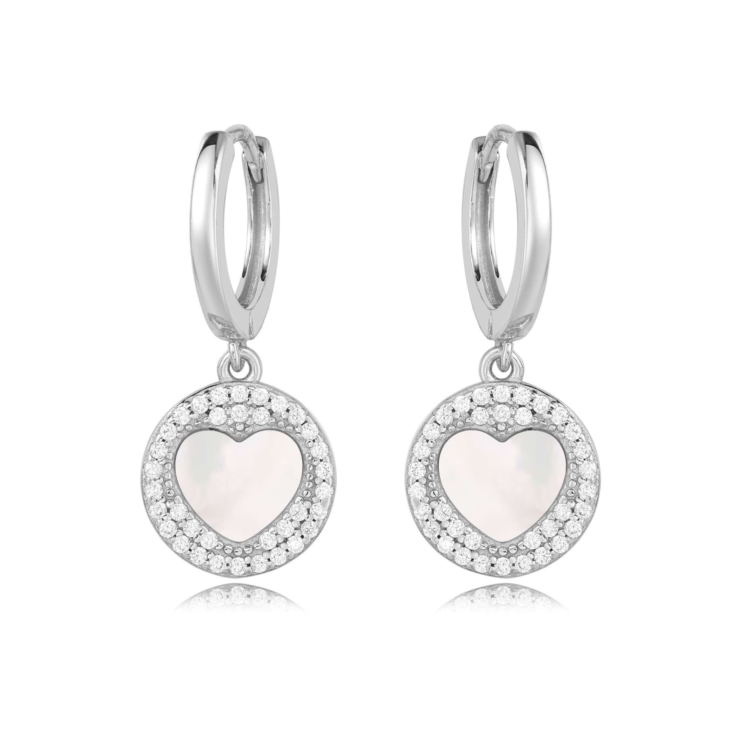 עגיל כסף לבבות מיני טס לבן