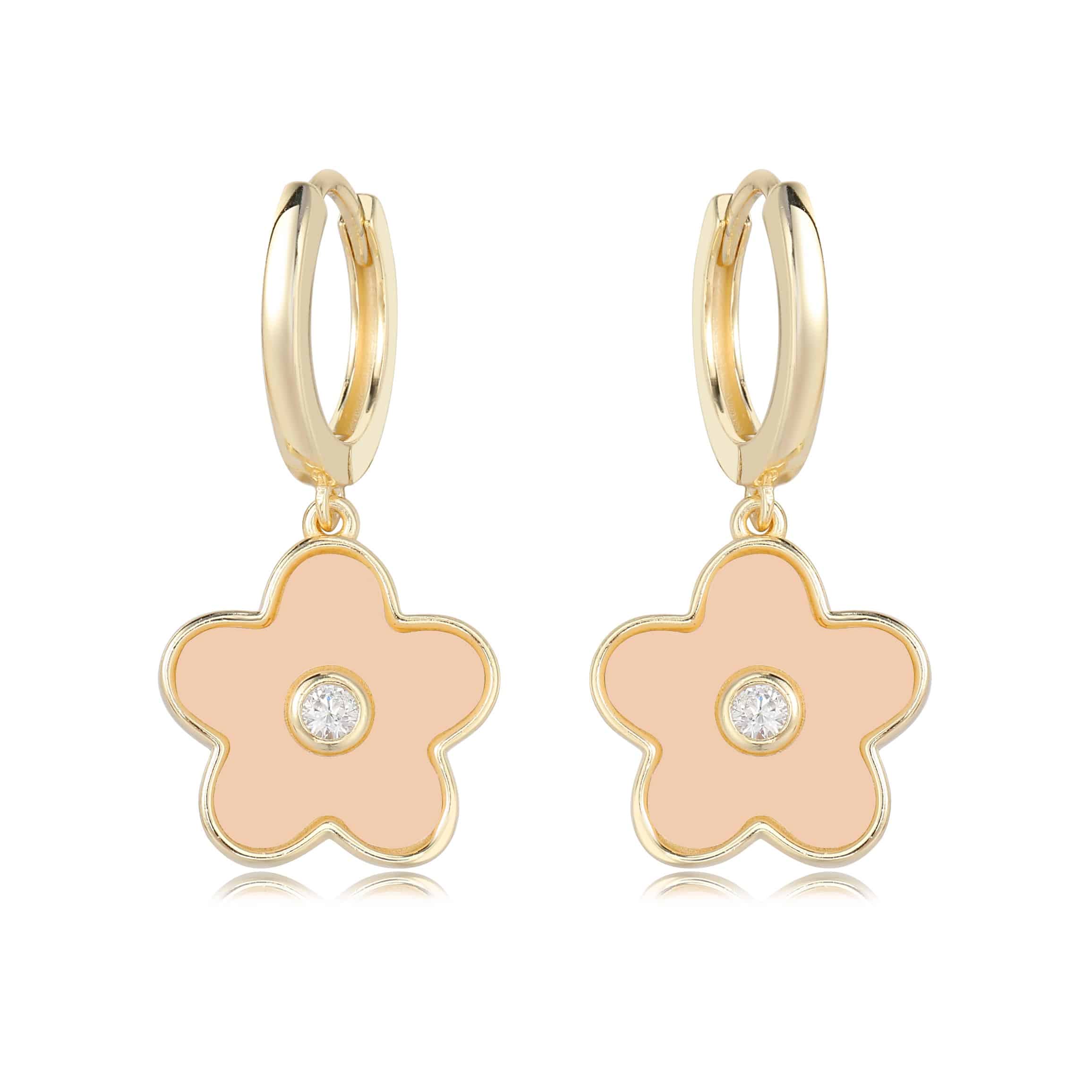 עגיל תליון זהב דאבל פרח ורוד