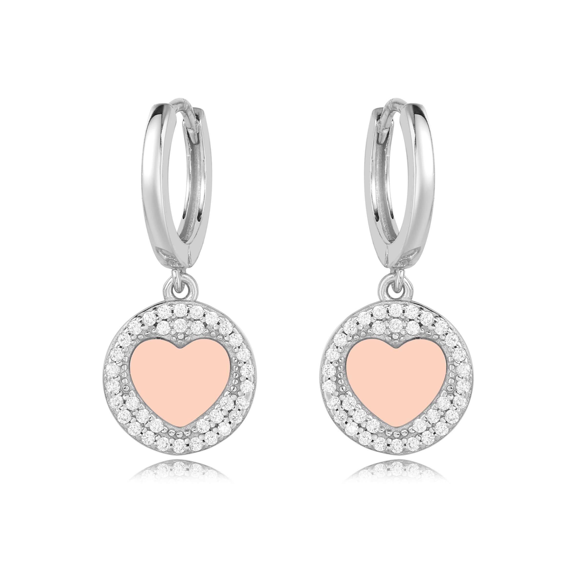 עגיל לב עיגול משובץ