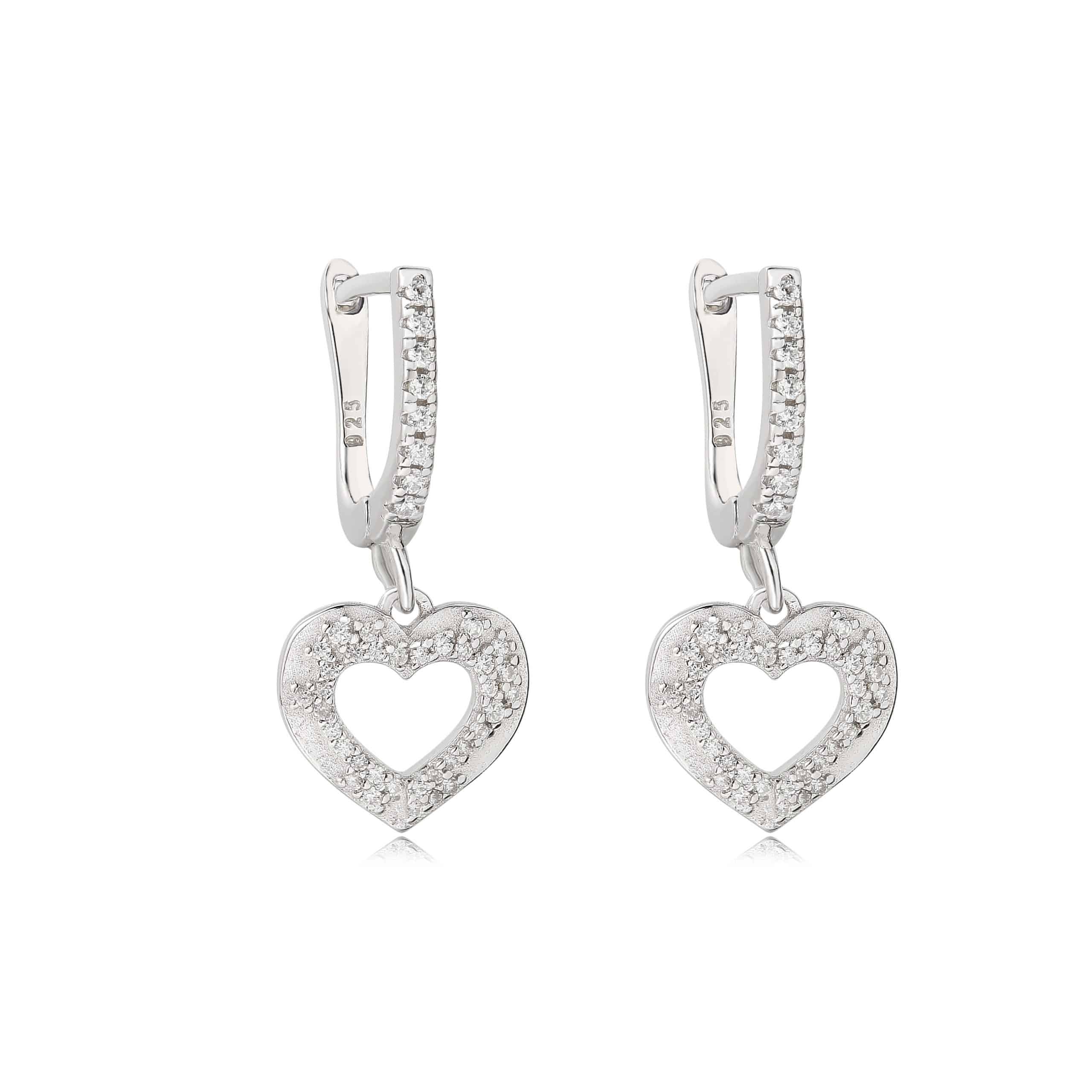 עגיל כסף לב בנצנוץ ירוק