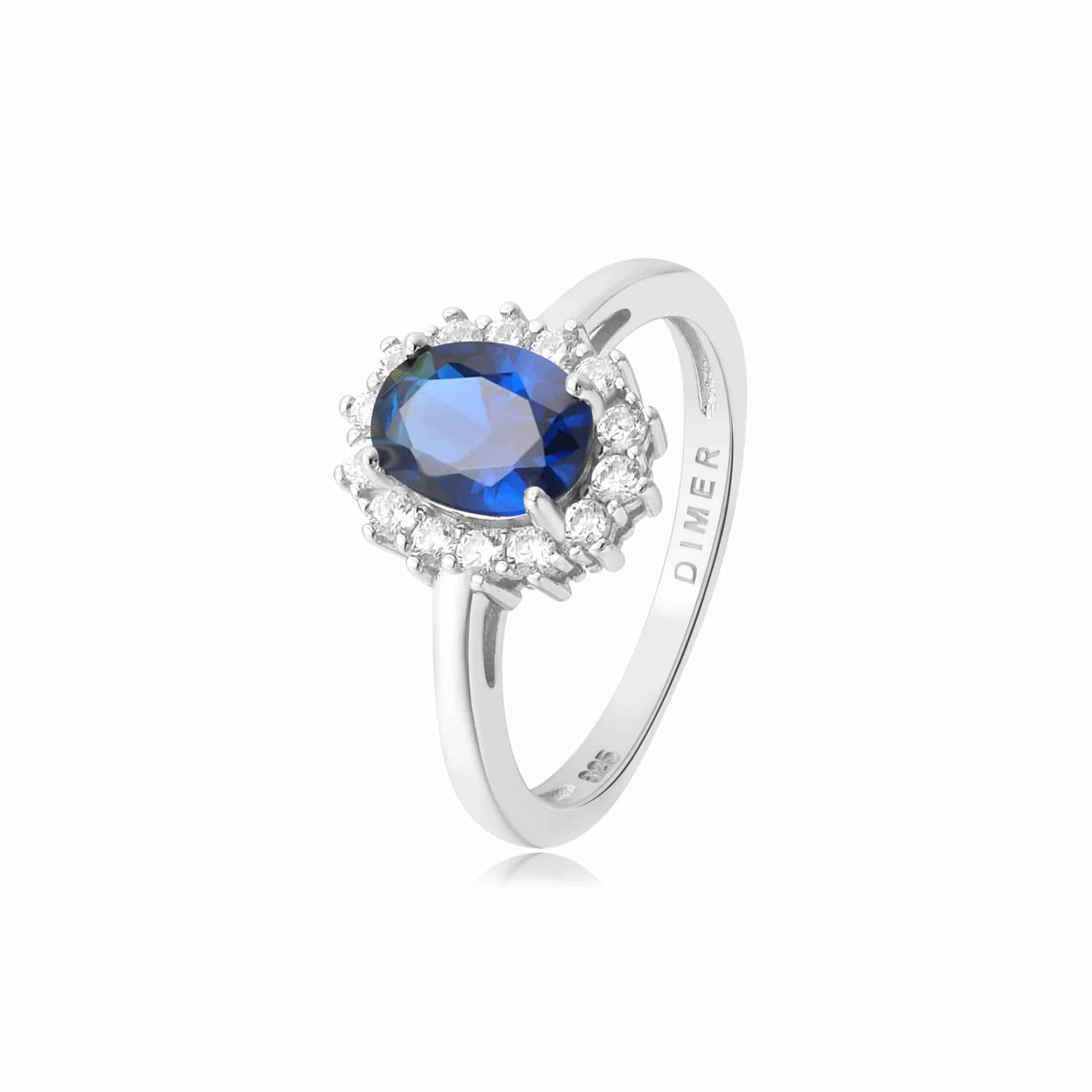 טבעת כסף אבן אליפסה משובצים באבני זירקון שקופות  גימור עבודת יד כסף טהור טבול זהב לבן.