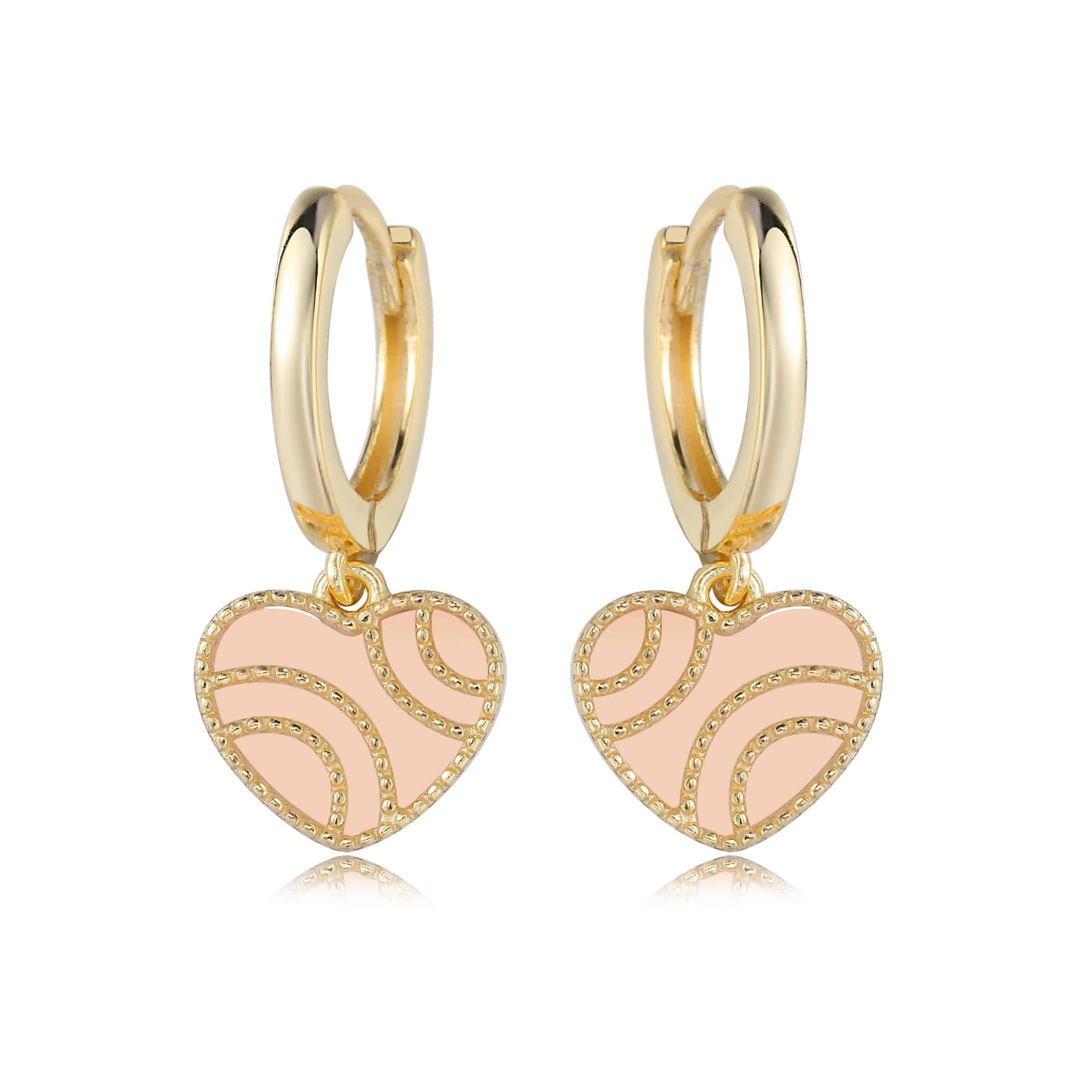 עגיל טס לב ורוד משובץ באבני זרקון שקופות גימור עבודת יד כסף טהור טבול בזהב לבן.