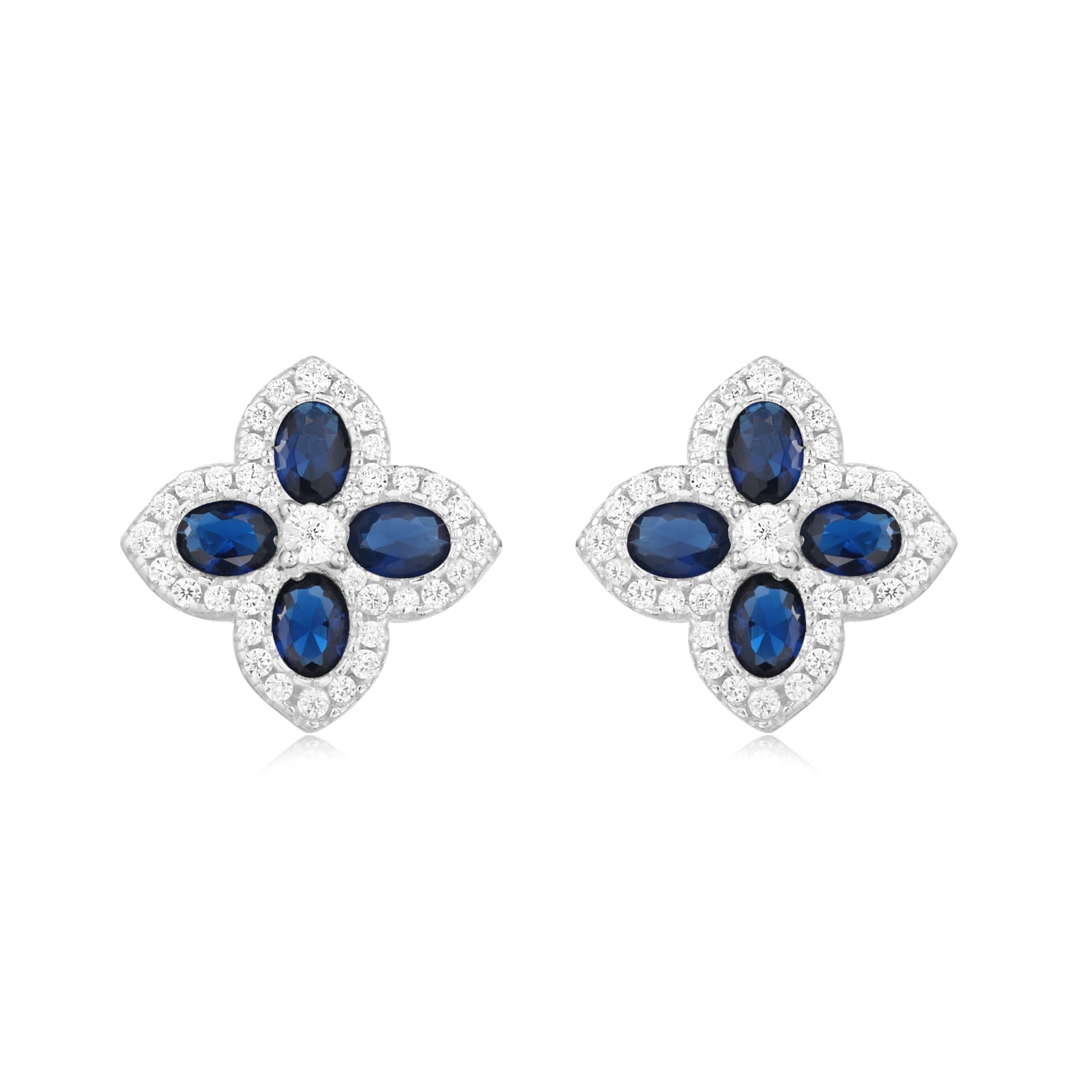 עגיל צמוד מכסף טהור טבול בזהב לבן בשיבוץ זירקוני לייזר בצבע כחול