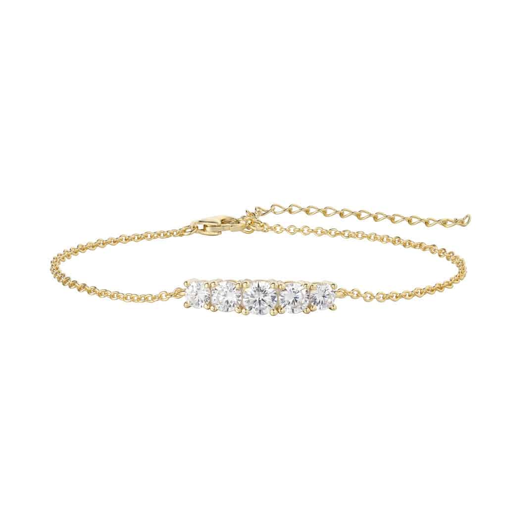 צמיד חוליות משובץ באבני זירקון שקופים עשוי בגימור עבודת יד מכסף טהור טבול בזהב לבן.