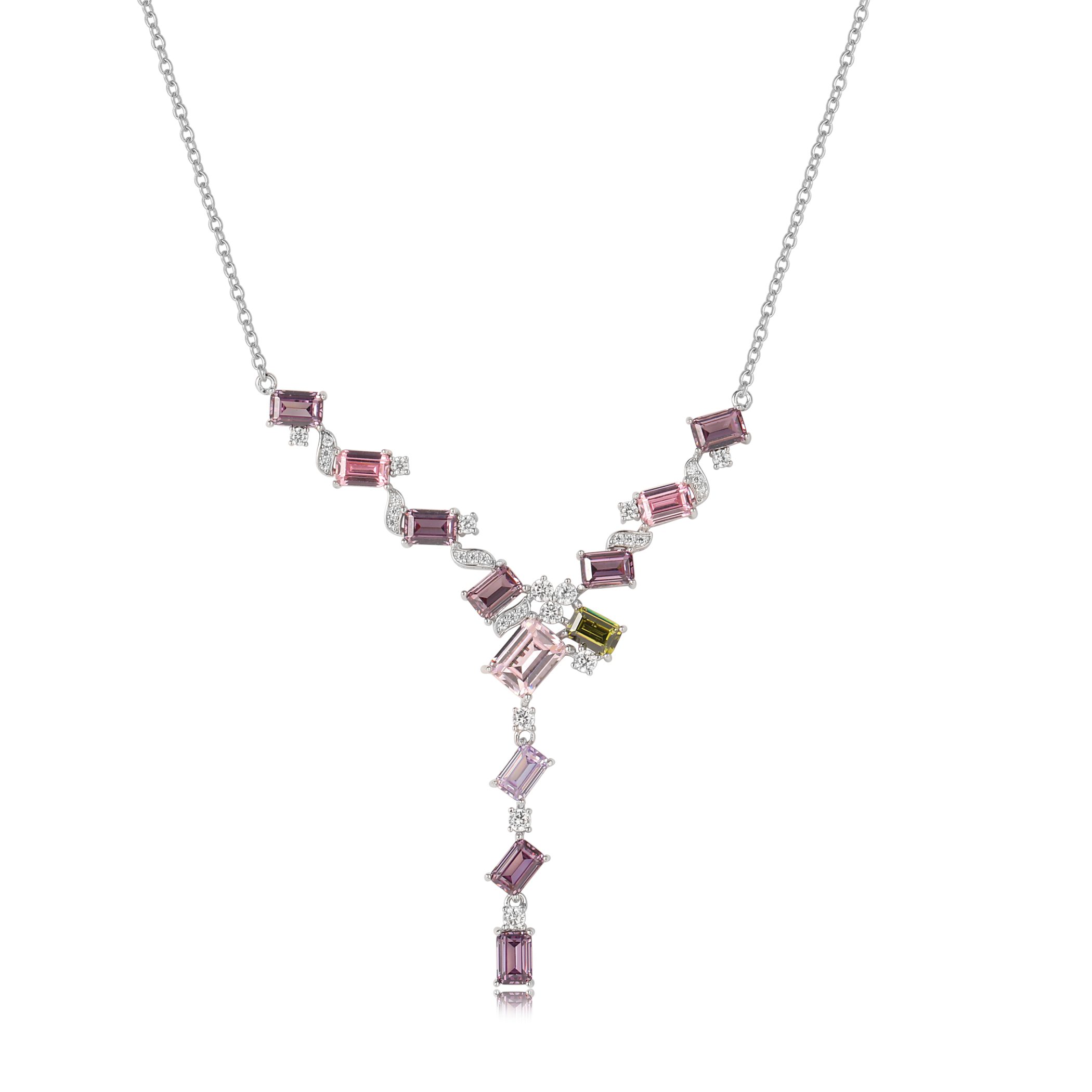 שרשרת אבני נופלות משובצת באבני זירקון גימור עבודת יד זהב טהור טבול בזהב צהוב.