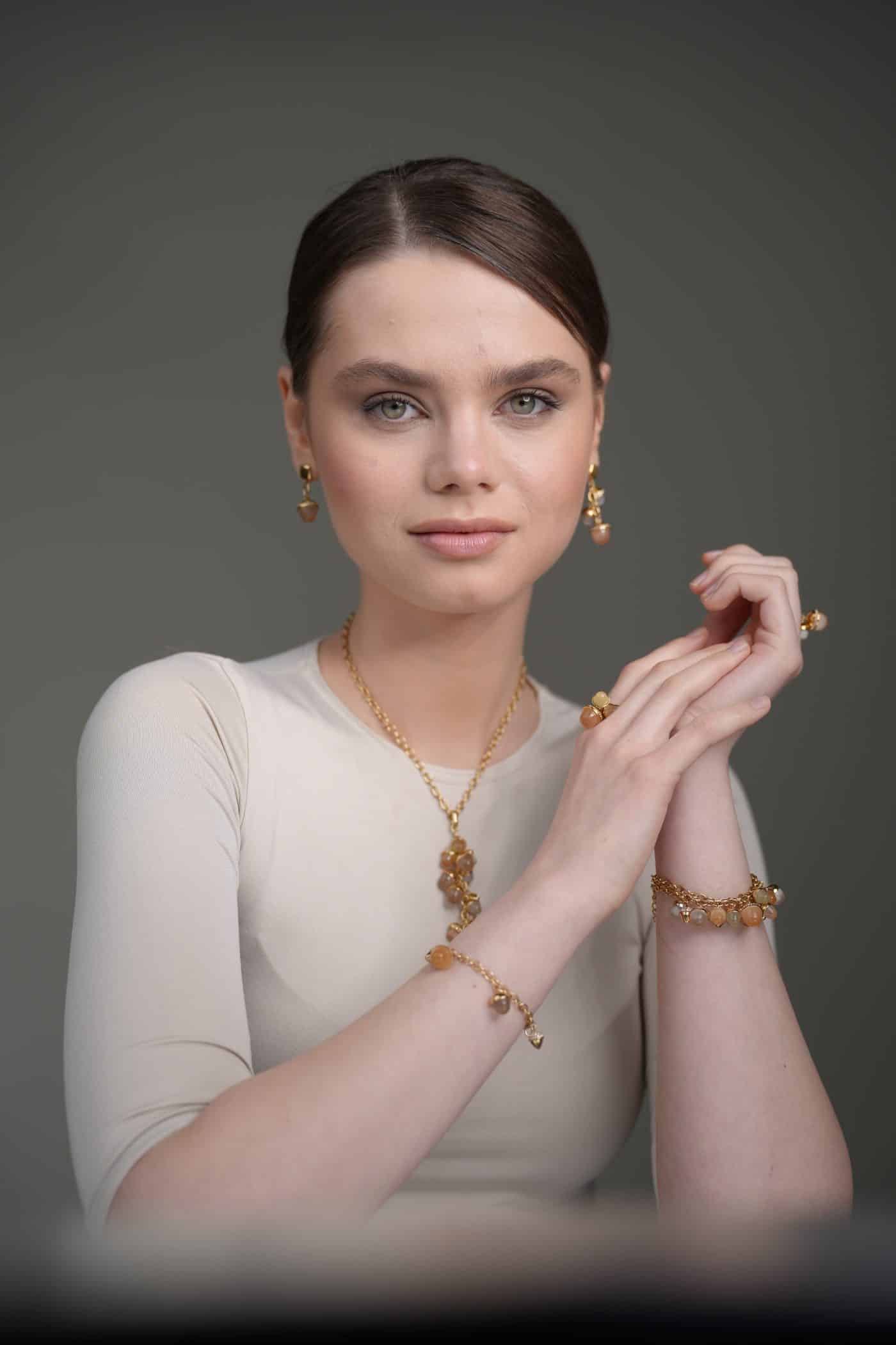 שרשרת בלו מצופה רוז פנינה משולב באבני חן